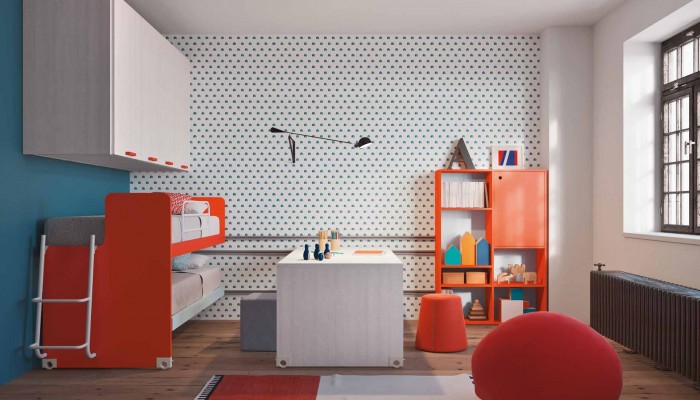 Maxi programma d'arredo,con possiilità compositive a 360° per la progettazione di camere da bambini e ragazzi.