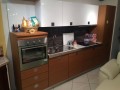 Cucina Naik Leader in legno teak con top in laminato e profilo acciaio, larghezza cm. 330, altezza cm. 220, completa di elettrodomestici, sconto 50% euro 5600,00